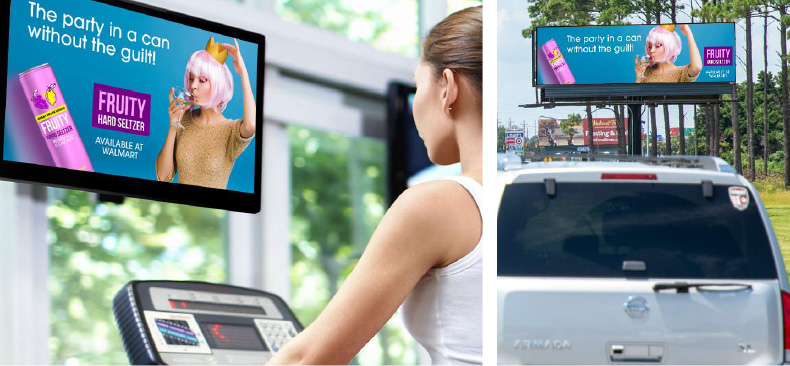 The hard seltzer company utilized Adomni’s programmatic DOOH platform, targeting women between the ages of 21 and 44 across billboards, rideshare vehicles, bowling alleys, and gyms. The omnichannel campaign reengaged audiences on mobile devices with messaging directing them to visit Walmart locations to purchase the bubbly products.